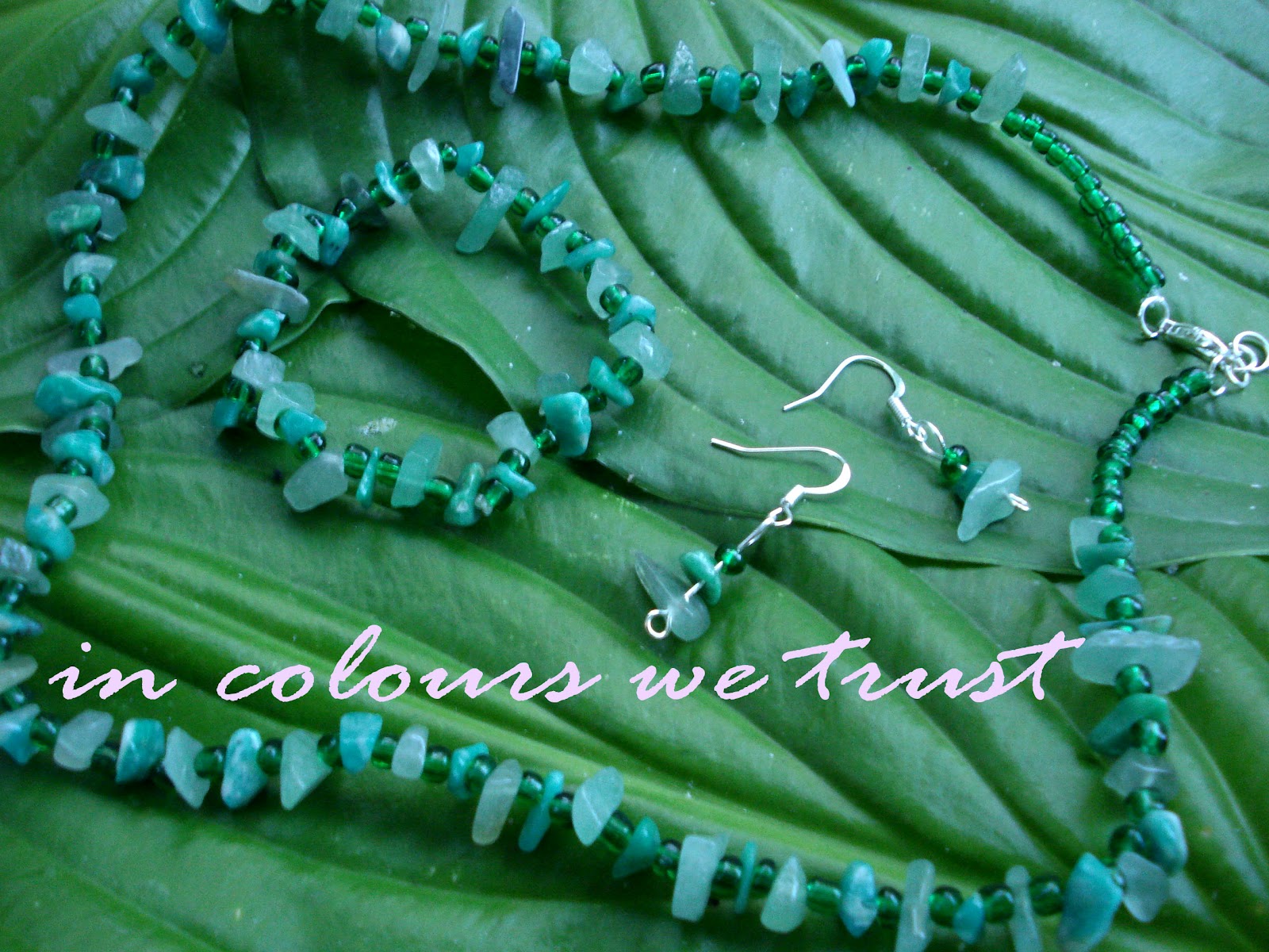 set cu amazonit si aventurin chipsuri si margele de nisip
